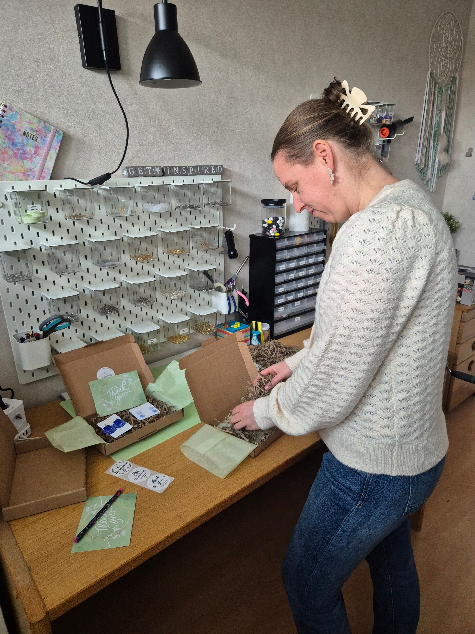 Bij SummeryClayStudio vinden we het belangrijk dat elke bestelling een speciale ervaring is. Daarom besteden we veel liefde en aandacht aan het inpakken van je sieraden. Zodra je bestelling binnenkomt, gaan we direct aan de slag om er een mooi pakketje van te maken. We hopen dat je net zo blij bent met het uitpakken als wij met het inpakken!